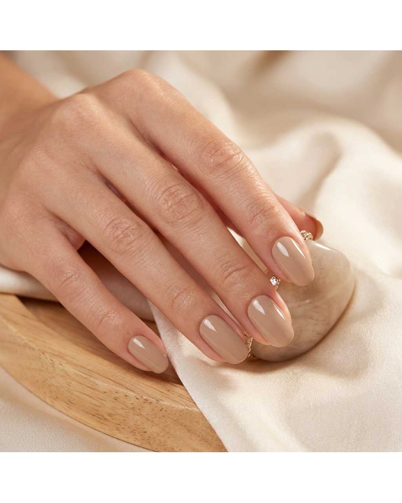 Bereite den Naturnagel mit einer klassischen Maniküre vor und raue anschließend die Nagelplatte mit einer sehr feinen Feile (Grit 180-240) an, bis keine glänzenden Stellen mehr sichtbar sind.